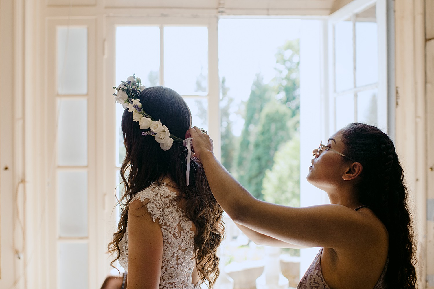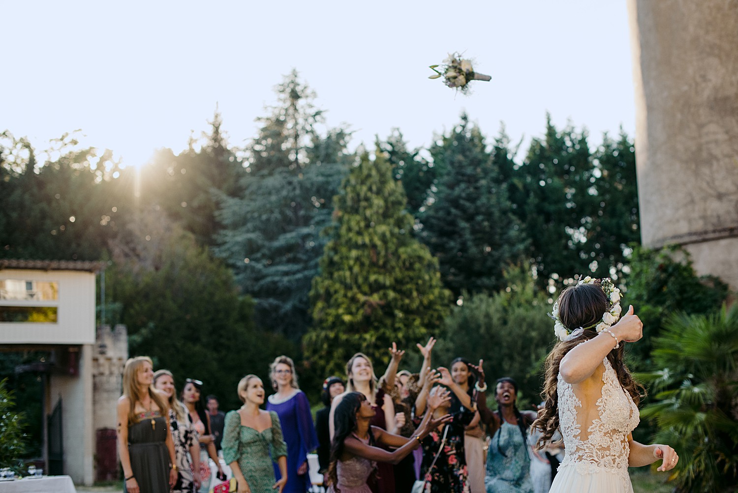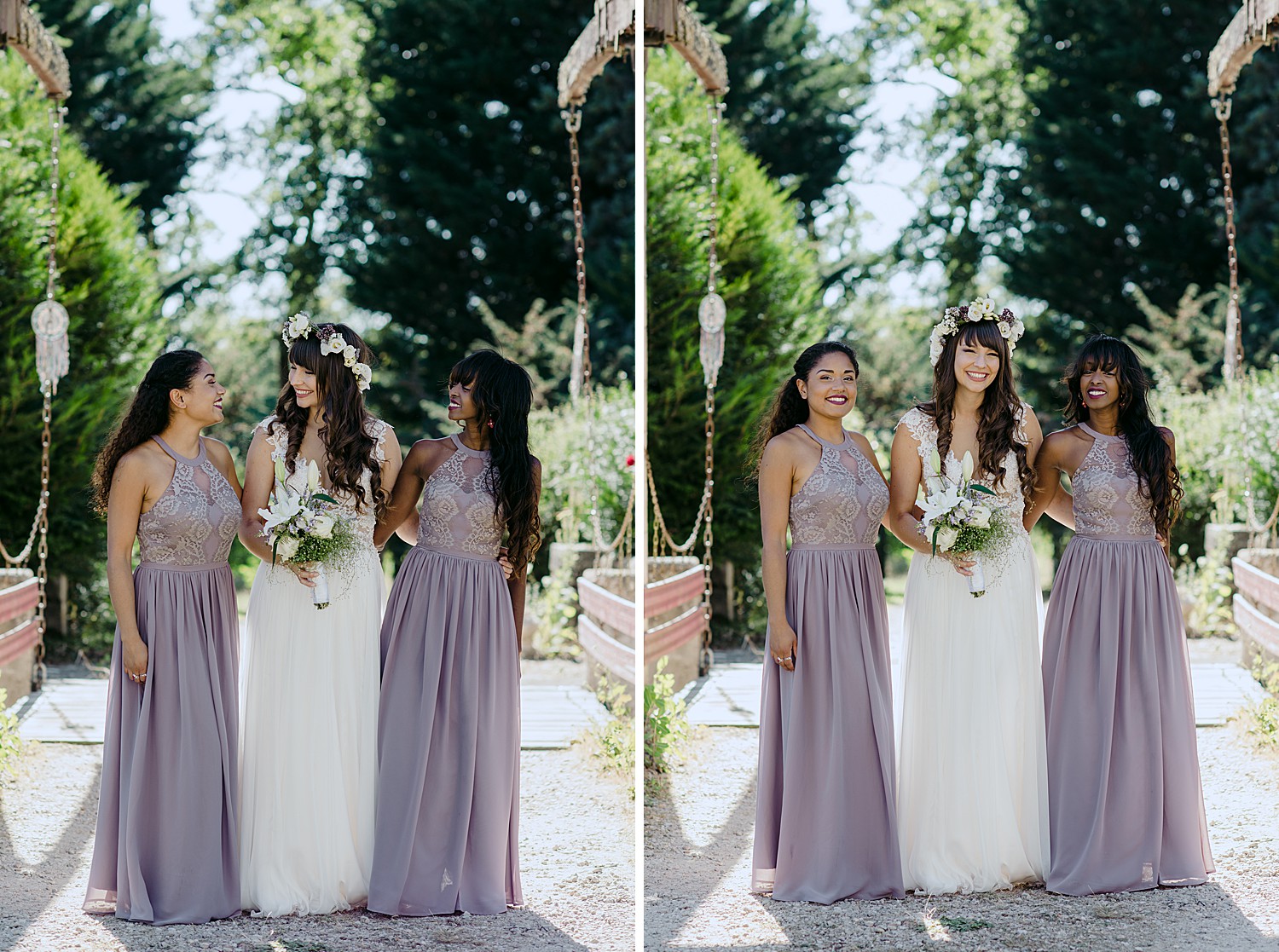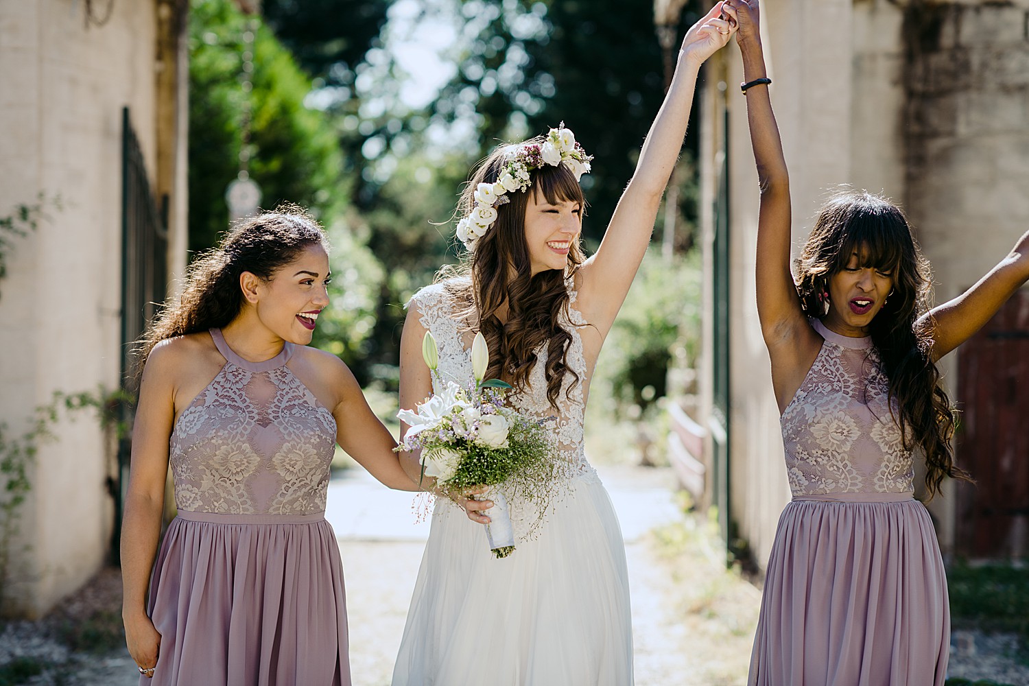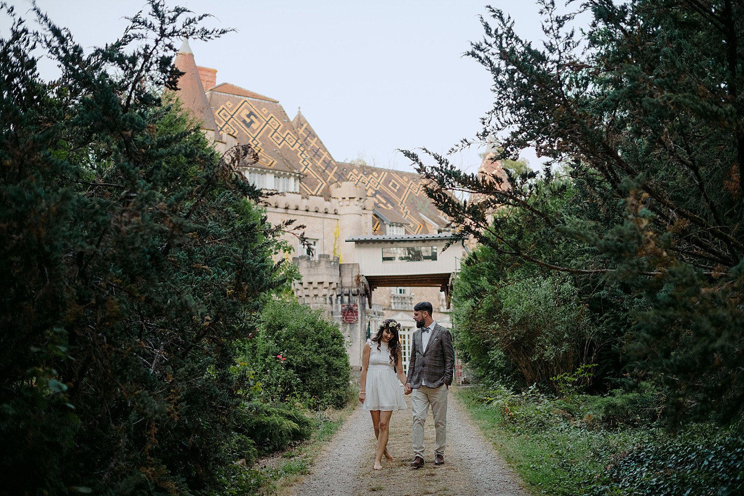 Looking back at Marisa and Samy’s Wedding at the Chateau de Fourgerette feels like a lovely dream. Forget any preconceived notions of how your typical French chateau may look – this eccentric, bohemian castle is nothing like you’ve ever seen. It has 55 bedrooms and a huge tiled entrance hall with 6m high ceilings, as well as a few winding staircases and what feels like so many different halls and passage ways, you think you’d stumbled into a scene from Alice in Wonderland.