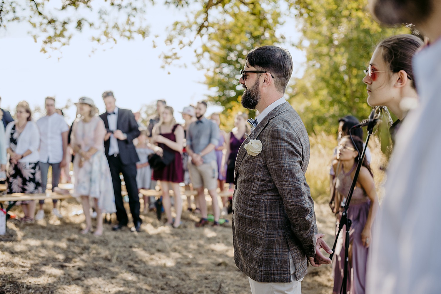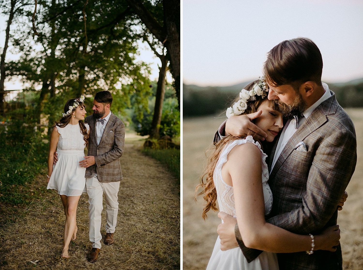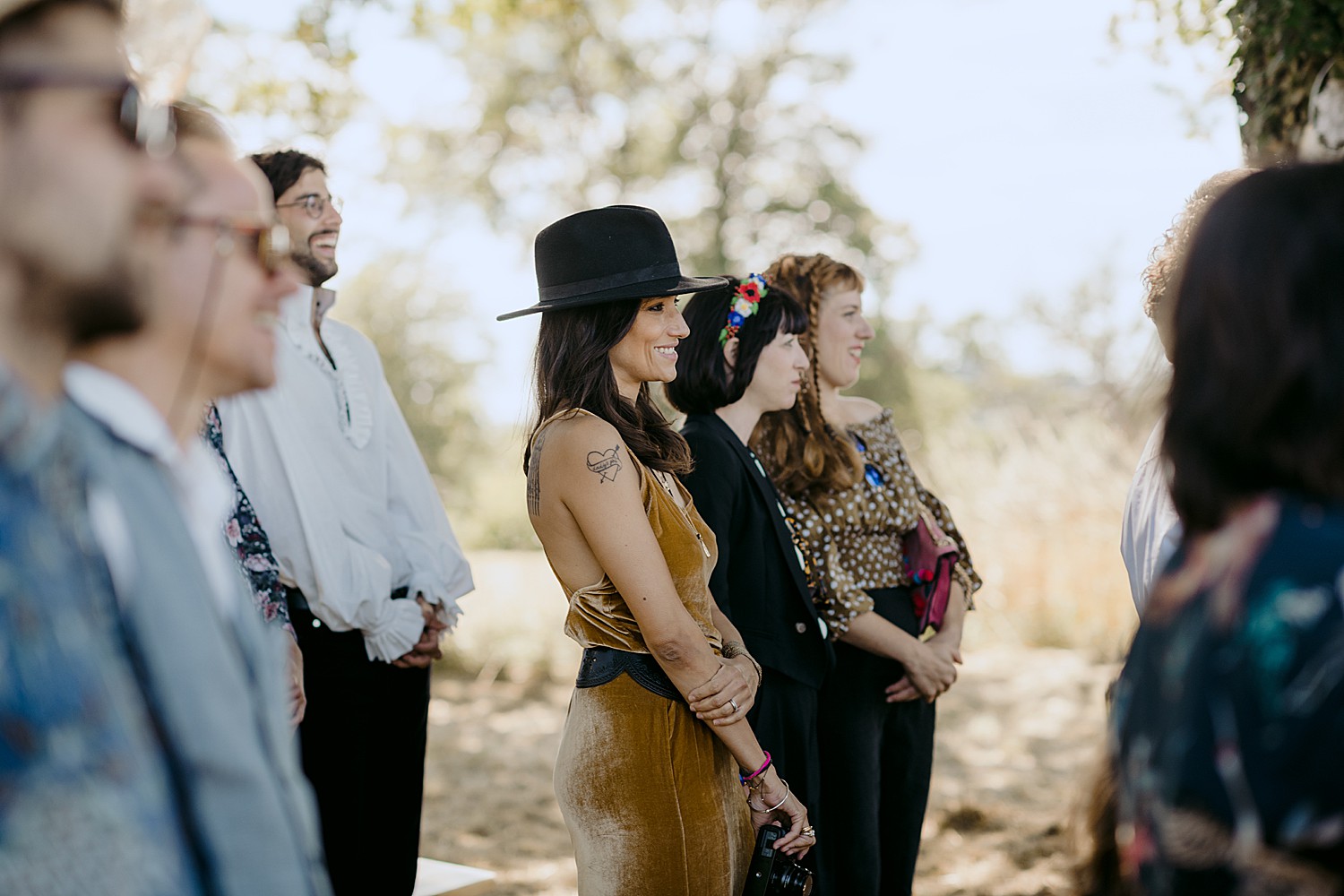 Built as far back as the 15th Century, the castle sits in the middle of a sprawling 20 hectare park. The park is home to a huge shady oak tree (where the ceremony was held), a small lake, rolling fields and a sustainable vegetable garden that supplies organic produce to the locals. The castle’s former owner was an eccentric Napoleon fan who added medieval style towers and a tiny outdoor gothic chapel. Since it’s takeover in 2013, the Chateau’s history of eccentricity has continued. It’s now the charming home of non-profit ‘Fou de Fougerette‘, an association that promotes the celebration of art and culture in all forms through sustainable, climate conscious activities.